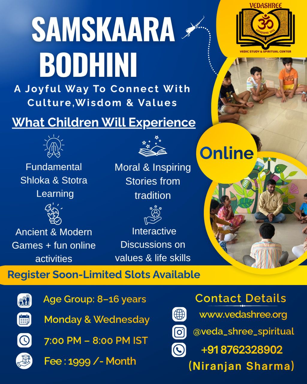 • Samskaara Bodhini (Value education) Online & Offline.